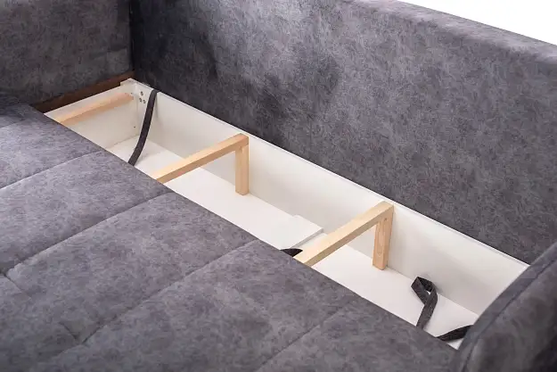 Диван комплектуется задней траверсой - надежно фиксирует подлокотники, защитит вас во время сна от соприкосновения со стеной
