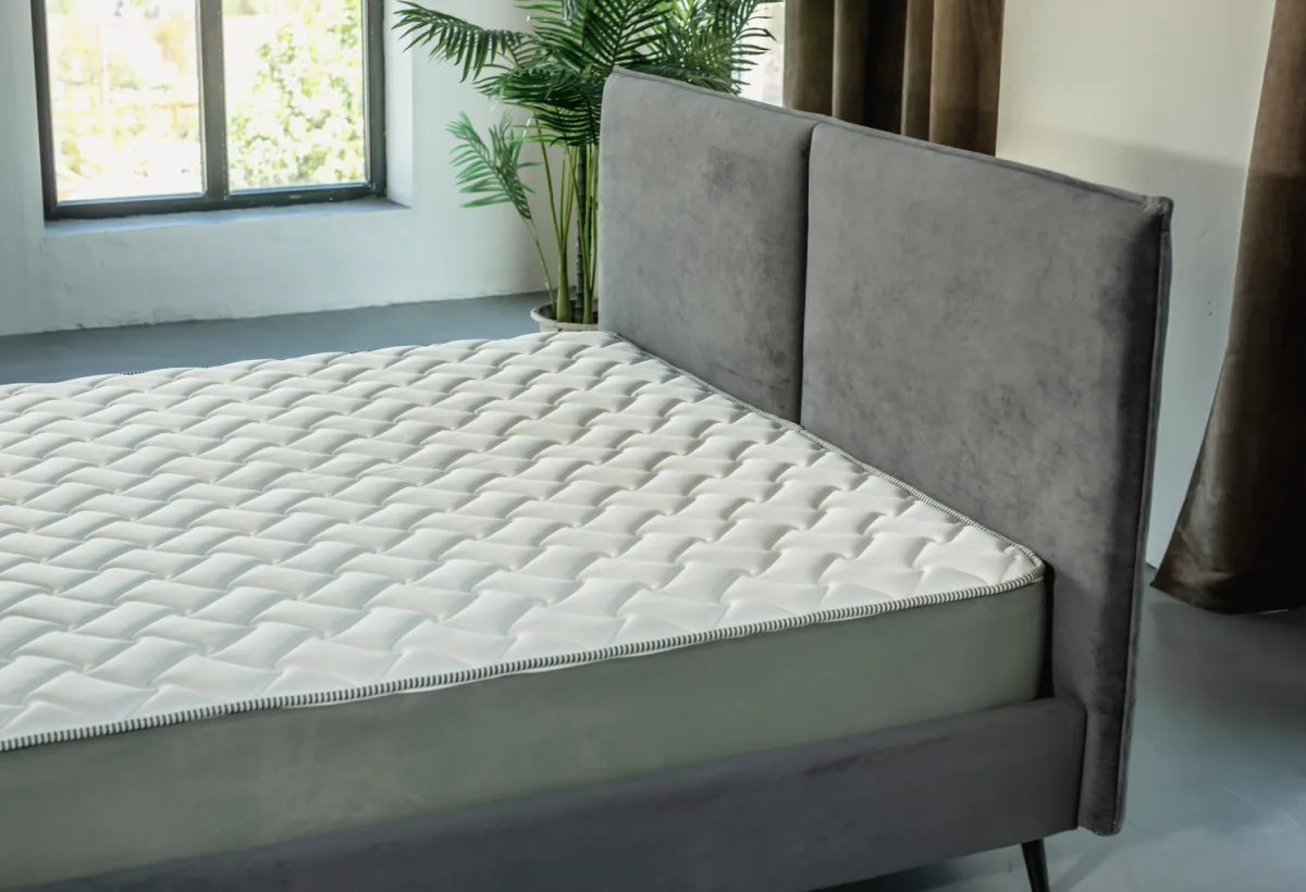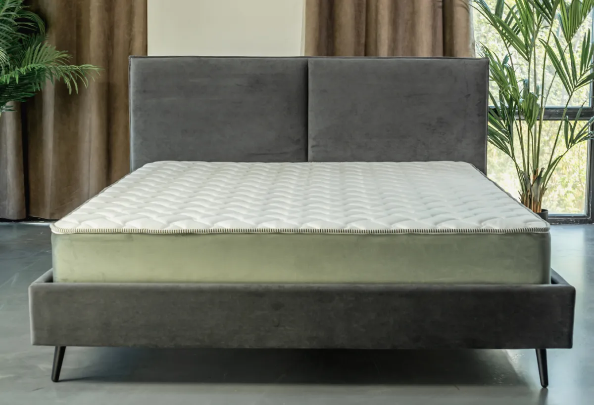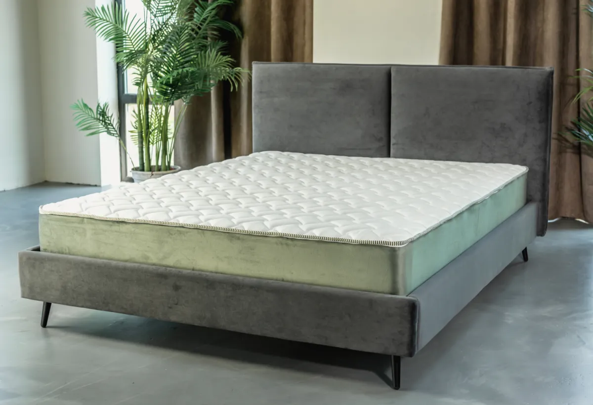 Просвет над полом в 150 мм обеспечивает достаточное пространство для уборки, включая использование робота-пылесоса. Заглубление матраса на 50 мм и высота по краю царги 335 мм делают кровать удобной и практичной. Все соединения кровати выполнены с использованием болтов, что гарантирует прочность и надёжность конструкции. Обратная сторона изголовья изготовлена из прочной и долговечной технической ткани, обеспечивая дополнительную износостойкость.