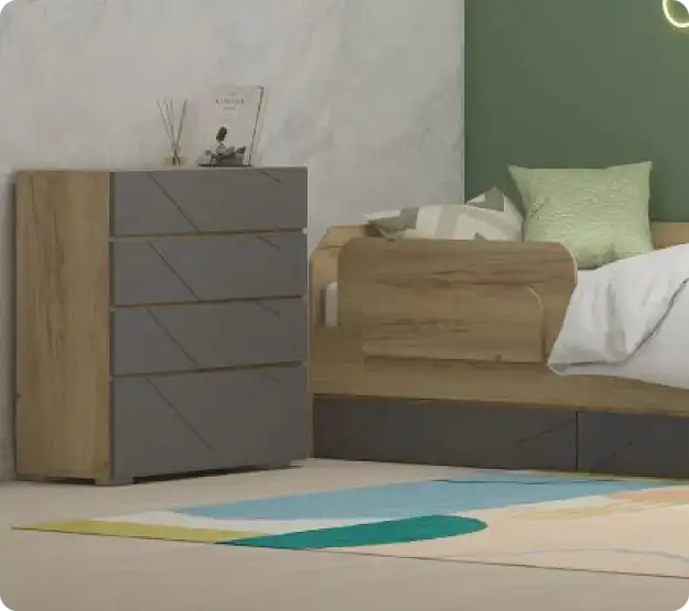 • ЛДСП 16 мм, кромки ПВХ: 0,4 мм, фасад - МДФ 16 мм. Задние стенки и дно ящика – ХДФ белый, 3 мм.